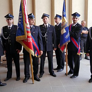 Na placu przed remizą strażacką Andrzej Borowski, Prezes Zarządu Oddziału Wojewódzkiego Związku Ochotniczych Straży Pożarnych w Opolu, w obecności bryg. Dariusza Maciążka - Komendanta Powiatowego PSP w Brzegu, Macieja Stefańskiego - Starosty Powiatu Brzeskiego, Bogusława Gąsiorowskiego - Wójta Gminy Lubsza, pocztów sztandarowych, zaproszonych gości i mieszkańców Dobrzynia , przekazał w ręce Naczelnika OSP w Dobrzyniu symbol św. Floriana - okazały, pięknie zdobiony sztandar.