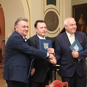 Pomoc w zajęciach praktycznych, korzystanie z bazy naukowej nyskiej uczelni oraz wzmocnienie oferty praktyk szkolnych - to główne założenia umowy, którą podpisali Starosta Brzeski Maciej Stefański, Dyrektor Muzeum Piastów Śląskich Dariusz Byczkowski oraz Rektor Państwowej Wyższej Szkoły Zawodowej w Nysie dr. Inż. Przemysław Malinowski.