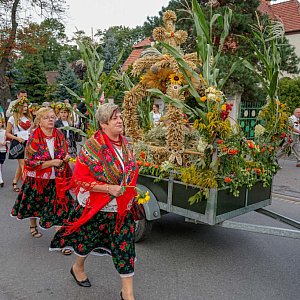 W niedzielę (26.08) Gminne Dożynki w Grodkowie tradycyjnie rozpoczęły się od uroczystej Mszy Świętej w kościele św. Michała Archanioła. Następnie uroczystym korowodem, uczestnicy Dożynek przeszli do Parku Domu Kultury, aby zaprezentować "Najpiękniejszą koronę żniwną"