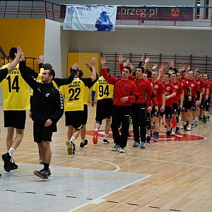 Spotkanie rozpoczęło się od szybkiego wyjścia na prowadzenie gospodarzy spotkania, dzięki energicznym bramkom Piecha, jego zespół prowadził 3:1. W kolejnych minutach przyjezdni zdołali doprowadzić do remisu, by następnie wyjść na jednobramkowe prowadzenie. Do pierwszego kwadransu obie ekipy prowadziły wyrównaną walkę, ale już w kolejnej odsłonie pierwszej połowy lepsi byli zdecydowanie przyjezdni, którzy bezapelacyjne zwyciężyli pierwszą połowę 12:20.