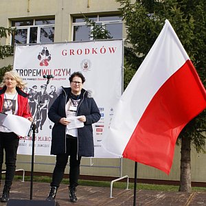 Ze szczególną atencją zostali powitani: Henryka Gruszka, Aleksandra Moroń i Andrzej Jamro ze Stowarzyszenia Rodzin Żołnierzy Wyklętych i zarazem przedstawiciele rodzin Żołnierzy Niezłomnych pomordowanych w Starym Grodkowie, a którzy byli i uczestniczyli w biegu na dystansie 1963 m, zarówno w tym roku, jak i latach ubiegłych. Oczywiście Pani Dyrektor powitała bardzo gorąco wszystkich uczestników obydwu biegów - dzieci w wieku szkolnym, a nawet przedszkolnym wraz z rodzicami, młodzież szkolną oraz osoby dorosłe w różnym wieku, bo przecież bez ich udziału nie byłoby tego biegu!