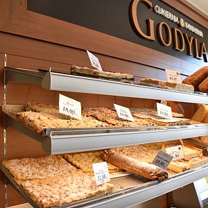 Cukiernia Godyla posiada bogatą ofertę pieczywa i ciast i tortów. Chleb jest robiony na naturalnym zakwasie. W piekarni znajdziecie chleb tradycyjny, razowy, słonecznikowy, orkiszowy, z mąką dyniową. Wypiekane jest także specjalne pieczywo dla cukrzyków, chleb szwajcar z twarożkiem, tygrysek z siemieniem lnianym i swojski chleb ze smalcem. Na pewno każdy znajdzie coś dla siebie.