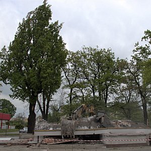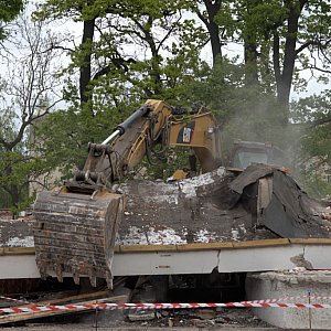 Dzisiaj koparka dokonała wyburzania centralnego, murowanego elementu. Było to niegdyś wejście oraz pomieszczenia służbowe oraz pokój dyżurnego ruchu.