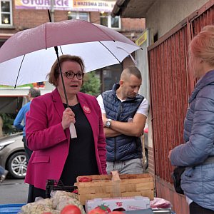 Spotkanie z politykami PiS, na które przybyli eurodeputowana Anna Zalewska, poseł Violetta Porowska, poseł Katarzyna Czochara, wiceminister Marcin Ociepa oraz burmistrz Brzegu Jerzy Wrębiak, zorganizowano przy wejściu na miejskie targowisko.
