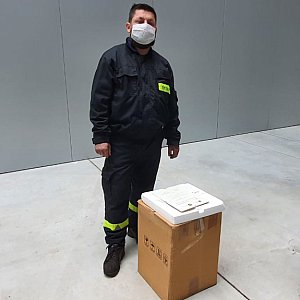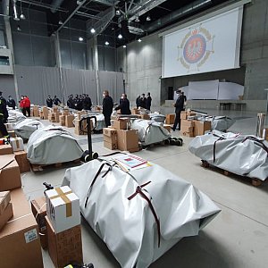 - Odebraliśmy namiot pneumatyczny wraz z wyposażeniem do obsługi. Przedłużacze, nagrzewnicę, czyli niezbędne wyposażenie, aby ten namiot mógł funkcjonować - komentował Wojciech Bieszczad z Jednostki Ratownictwa Specjalistycznego OSP w Skarbimierzu.