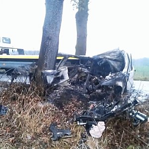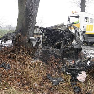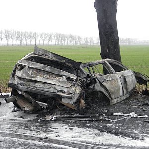 Dziś (28.11), około godziny 9:00, dyżurny Państwowej Straży Pożarnej w Brzegu otrzymał zgłoszenie o płonącym pojeździe tuż przy wiadukcie kolejowym w Mąkoszycach. Kierowca osobówki uderzył w drzewo, po czym auto stanęło w płomieniach.