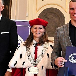 Tradycyjnie już inauguracja roku akademickiego stała się okazją do uhonorowania przez założycieli i władze WSHE kolejnych osób specjalnymi nagrodami - statuetkami "Orła WSHE", których nazwa i forma nawiązują do logo naszej brzeskiej uczelni. W tym roku kapituła nagrody uhonorowała: Prezesa Opolskiej Izby Gospodarczej Bartosza Ryszkę oraz Pułkownika Krzysztofa Jaroszka w kategorii podmiot i instytucja współpracująca z WSHE oraz Mateusza Masternaka w kategorii aktywny student i absolwent WSHE.