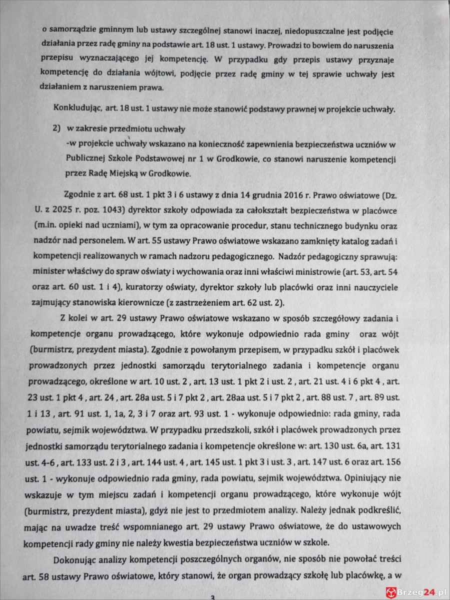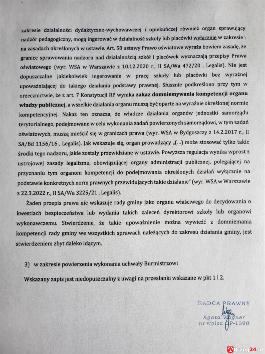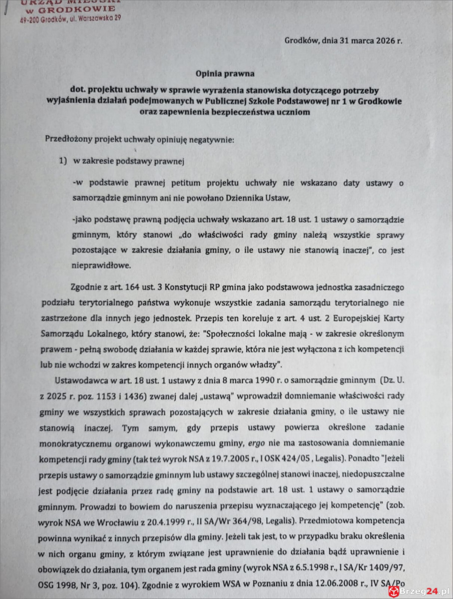 To właśnie projekt tej uchwały stał się przedmiotem negatywnej opinii prawnej sporządzonej w urzędzie. Radca prawny uznał, że rada miejska nie ma kompetencji do zajmowania się kwestią bezpieczeństwa uczniów w szkole. Taka interpretacja od początku budziła poważne wątpliwości. Sama treść projektu nie zawierała przecież żadnych nakazów wobec dyrektora czy kuratorium. Rada chciała jedynie wyrazić stanowisko, że sprawa wymaga pełnego, rzetelnego i transparentnego wyjaśnienia, a wszystkie działania powinny być prowadzone zgodnie z prawem i z myślą o bezpieczeństwie dzieci.