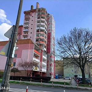 Rozpoczął się częściowy remont jednych z najbardziej rozpoznawalnych bloków w Brzegu, tzw. różowych wieżowców przy ul. Chocimskiej. Prace obejmują kompleksową modernizację balkonów, w tym wymianę balustrad oraz elementów ocieplenia w ich obrębie.