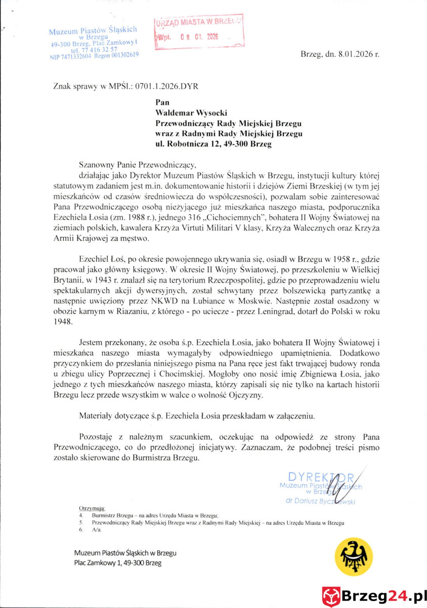 Druga propozycja została złożona przez dyrektora Muzeum Piastów Śląskich w Brzegu, Dariusza Byczkowskiego. W piśmie skierowanym do przewodniczącego Rady Miejskiej zaproponował nadanie rondu imienia podporucznika Ezechiela Łosia, cichociemnego, żołnierza Armii Krajowej i mieszkańca Brzegu.