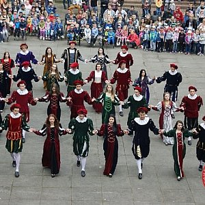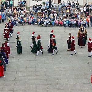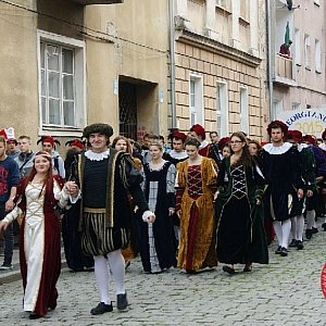 Uroczystość rozpoczęliśmy tradycyjnym polonezem w wykonaniu młodzieży naszej szkoły. Jak co roku, na dziedziniec zamku przybył Jan Kochanowski z małżonką córką Urszulką oraz damami i halabardnikami z Publicznej Szkoły nr 3 w Brzegu.