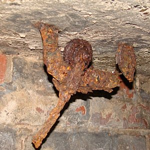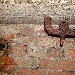 Na taką architekturę dotychczas nie natrafiliśmy. Do kolejnej odnogi podziemi prowadziły schody do góry. Po ich pokonaniu, nad nami znajduje się wyjście, które prowadzi do magazynów przy rampie. Jeden metr w lewo i nad nami kolejne wyjście (prawdopodobnie do magazynu paliw). Długość korytarza wynosi około 25 metrów, a jego trasa wiedzie w kierunku budynku głównego. Niestety ... do celu nie docieramy. Uniemożliwiła nam to ściana z cegieł, a za nią, zasypana gruzem i piaskiem, dalsza część korytarza. Po zbadaniu pomieszczeń piwnicznych w budynku głównym, można domyślać się, że właśnie do nich prowadziło podziemne przejście.