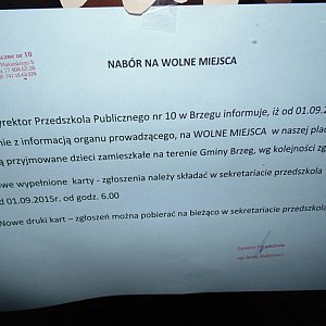 Niecodzienna sytuacja miała miejsce w Brzegu. Niektórzy rodzice spali dwa dni pod przedszkolem nr 10 przy ulicy Makarskiego, aby złożyć wniosek rekrutacyjny do placówki. Wszystko za sprawą formy naboru dzieci, w której o przyjęciu zadecyduje kolejność zgłoszeń.