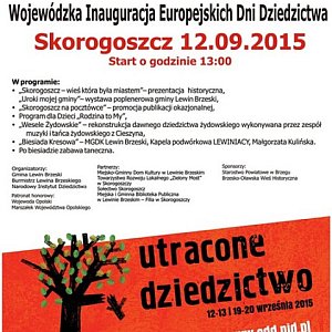 W sobotę w Skorogoszczy odbędzie się Wojewódzka Inauguracja Europejskich Dni Dziedzictwa. Start imprezy: 13:00. W programie imprezy znalazły się takie punkty jak: rekonstrukcja dawnego dziedzictwa żydowskiego w wykonaniu zespołu muzyki i tańca żydowskiego z Cieszyna oraz Biesiada Kresowa w wykonaniu zespołu Lewiniacy. (szczegóły na plakacie)