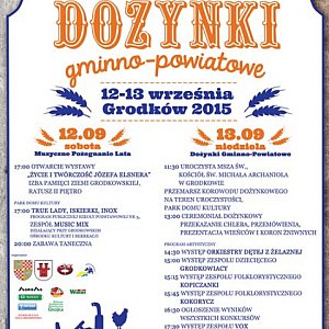 W najbliższy weekend w Grodkowie odbędzie się powiatowe święto plonów - Dożynki Gminno-Powiatowe. Dożynkowy weekend rozpocznie się w sobotę (12.09) Muzycznym Pożegnaniem Lata, w którego programie znalazły się prezentacje artystyczne PSP nr 3 z Grodkowa, koncert zespołu Music Mix (OKiR) oraz zabawa taneczna. Niedziela (13.09) to dzień Gminno-Powiatowych Dożynek. W programie nie zabraknie uroczystej Mszy Świętej Dożynkowej (g. 11:30 w kościele św. Michała Archanioła w Grodkowie). Tuż po Mszy Św. uczestnicy i goście dożynek przemaszerują korowodem dożynkowym do Parku Domu Kultury, gdzie odbędzie się dalsza część imprezy. Na scenie zaprezentują się m.in.: Grodkowiacy (zespół dziecięcy), zespół Kopiczanki, zespół Kokorycz, zespół VOX i Lewiniacy. Na koniec zaplanowano Biesiadę polsko-kresowo-śląską w wykonaniu zespołu Trojak. (szczegóły na plakacie)