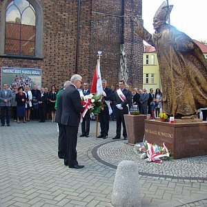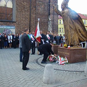 o ofiarach, jakie ponieśli solidarnościowi działacze walcząc o wolną Polskę. Po Mszy Św. delegacje Solidarności, starostwa, władz gminnych i grodkowskiego PIS-u złożyły wiązanki kwiatów pod pomnikiem świętego Jana Pawła II. Stąd uczestnicy obchodów przenieśli się na grodkowski rynek, gdzie szefowa grodkowskiej solidarności oświatowej Danuta Trzaskawska