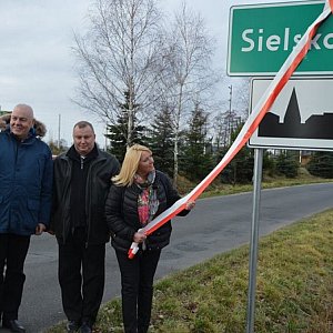 W otwarciu Sielskiej Wody, które odbyło się 29 grudnia br. udział wzięło wielu gości, a uroczystego odsłonięcia tablicy wjazdowej do miejscowości oprócz Państwa Tomków - pierwszych mieszkańców osady, dokonali także Starosta Powiatu Brzeskiego Maciej Stefański i Wójt Gminy Lubsza Bogusław Gąsiorowski.