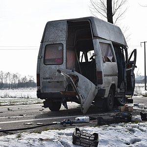 W wyniku zderzenia osobówki z autem dostawczym zostały poszkodowane dwie osoby. Do wypadku doszło na drodze krajowej 39 na wysokości Małujowic. Ruch w tym miejscu odbywa się wahadłowo.