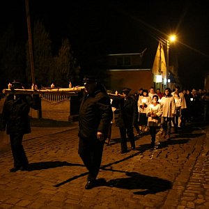 W Wielki Piątek tuż po Liturgii Męki Pańskiej rozpoczęła się droga krzyżowa ulicami Mąkoszyc w gm. Lubsza. Jak co roku nie mogło zabraknąć w niej udziału strażaków z OSP Mąkoszyce, którzy tradycyjnie prowadzili drogę krzyżową niosąc krzyż oraz zapewnili bezpieczeństwo uczestników nabożeństwa.