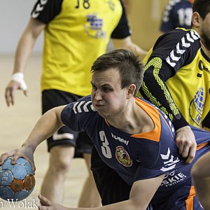 Pierwszą bramkę i prowadzenie dla gospodarzy dał najlepszy strzelec minionego sezonu Michał Piech, następne dwa trafienia należały do drużyny gości, Olimp po rzucie Krzysztofa Bujaka tracił bramkę do gości. Zawodnicy Viretu Zawiercie pokazali na boisku ogromną wolę walki, grając niezwykle ambitnie, a przy tym bardzo agresywnie co w oczach sędziów przekładało się na kary dwuminutowe. Natomiast zawodnicy Olimpu grali nieskutecznie i popełniali liczne błędy w efekcie czego w 21 minucie to goście prowadzili 10:7, po tym okresie następuje zryw Olimpu, dzięki dobrej postawie w bramce Krzysztofa Muszaka i celnym trafieniom Sebastiana Kolanko i Pawła Chmiela, pozwalają zespołowi gospodarzy na doprowadzenie do remisu. Wydawać by się mogło że rywal został przystopowany a Olimp wyjdzie na prowadzenie i nie odda go już do końca meczu. Jednakże następne bramki zdobywają zawodnicy Viretu na tablicy widnieje wynik 12:10, w tym okresie gry Olimp dostaje "prezent" od losu bo sędziowie w odstępie kilku sekund usuwają aż trzech zawodników Viretu karząc ich dwuminutowymi karami.