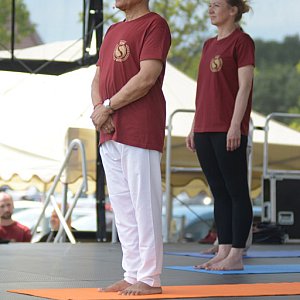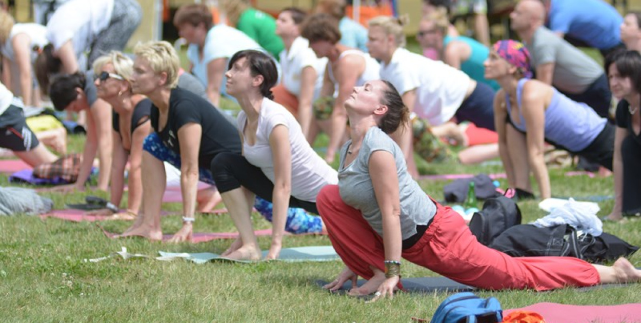 W uroczystości wystarczyło "zatrzymać" się na chwilę i poćwiczyć na przypałacowych błoniach i przez 12 minut wykonać sekwencje 12 asan Powitania Słońca. Sekwencja "Powitanie słońca" to znany każdemu joginowi układ 12 pozycji, wykonywanych jedna po drugiej, połączonych ze sobą płynnymi przejściami. Przy wykonywaniu kolejnych ruchów ważny jest usystematyzowany i w pełni kontrolowany przepływ oddechu.