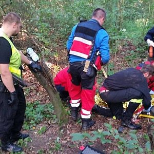 - Zaginiony został odnaleziony w pobliżu Odry w odległości 1,4 km od miejsca zamieszkania. Buddy znalazł mężczyznę i zaczął szczekać, dając w ten sposób sygnał dla przewodnika. 76-latkowi natychmiast udzielono kwalifikowanej pierwszej pomocy a następnie przetransportowano w kierunku zabudowań, gdzie czekał zespół ratownictwa medycznego. Wyziębiony mężczyzna trafił do szpitala - informują ratownicy.