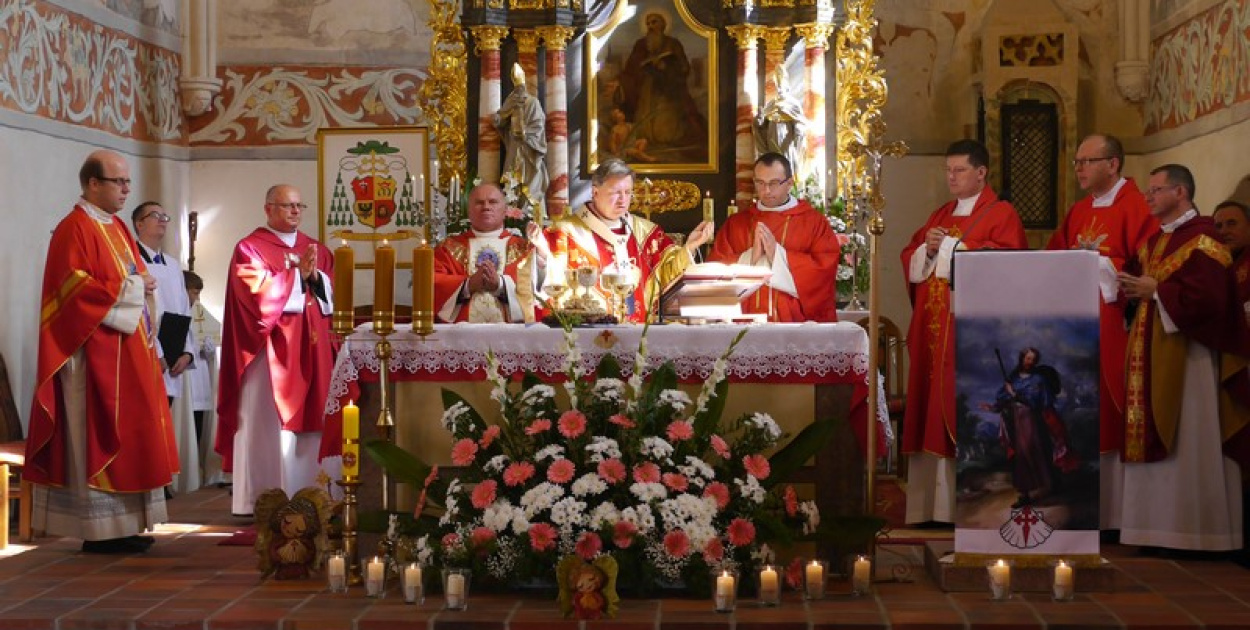 W dniu dzisiejszym (niedziela 25.09.br.) z udziałem hierarchów kościelnych Archidiecezji Wrocławskiej, rzeszy wiernych parafii Małujowice i setek pielgrzymów z całej Polski odbyła się uroczystość wprowadzenia i zainstalowania w kościele relikwii I stopnia św. Jakuba Apostoła.