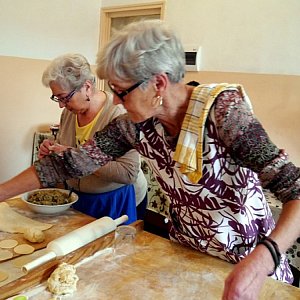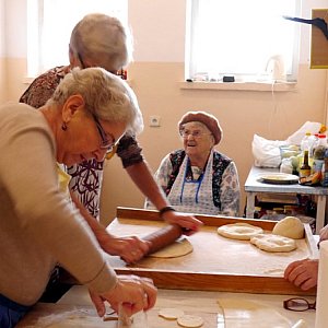 Zanim to jednak nastąpiło, trzeba było włożyć wiele pracy, by przygotować świetlicę, a przede wszystkim smaczne potrawy, które zwykle jada się przy wigilijnym stole. Salę świetlicy pięknie udekorowały: Marta Pawlak, Katarzyna Machowska, Mariusz Chudy, Wojciech i Monika Zubicka, Beata Semenowicz, W kuchni uwijały się: Alicja Mazurek, Wanda Demska, Irena Adasik, Wanda Zakrzewska, Bernarda Skotnicka, Ewa Nowak, także wszechobecne Marta Pawlak, Beata Semenowicz, Katarzyna Machowska i Monika Zubicka. Swoje pierwsze szlify kulinarne próbowały doskonalić lepiąc pierogi, Oliwia i Paulina Pawlak. Jako mała dziewczynka, mając 10 lat pomagałam swojej mamie Emilii lepić pierogi - wspomina pani Bernarda Skotnicka, urodzona na Kresach. Na co dzień gotowaliśmy zwykle tzw. "ruskie pierogi" z serem. Natomiast na nasz stół wigilijny trafiały pierogi z kapustą oraz kaszą jęczmienną. Obowiązkowo na stole musiała pojawić się kutia. Po odpowiednim przygotowaniu pszenicy, tarło się dorodny mak z cukrem w makutrze. Potem wszystko mieszało się razem wzbogacając kutię miodem i orzechami włoskimi. Przed wojną wieczerza wigilijna wydaje mi się - dodaje pani Bernarda, miała bardziej podniosły charakter. Na ten dzień wszyscy czekali z utęsknieniem, a gdy wreszcie nadszedł, oczekiwaliśmy pierwszej gwiazdki na niebie, by zasiąść do stołu.