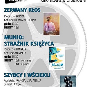 Kino "Klaps" w Grodkowie zaprasza na piątkowe (21.04) seanse filmowe. Tego dnia na ekranie kina zaprezentowane zostaną takie filmy jak: "Zerwany kłos" (g. 13:30), "Munio: Strażnik Księżyca" (g. 15:30) oraz "Szybcy i Wściekli 8" (g. 17:30 i 20:00). Więcej informacji znaleźć można tutaj.