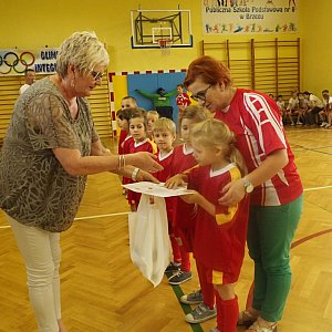 W naszych Igrzyskach nie było przegranych, mimo uzyskanych punktów - wszyscy zawodnicy byli zwycięzcami. Każda drużyna została obdarowana dyplomem, nagrodą - piłką nożną oraz biletami wstępu na pływalnię, a każdy uczestnik został udekorowany medalem. Fundatorem upominków była nasza szkoła, Burmistrz Brzegu oraz MOSiR. Po zamknięciu Igrzysk przez dyrektor szkoły nastąpiło wystrzelenie w górę konfetti i wszystkie zespoły stanęły do wspólnego, pamiątkowego zdjęcia. Impreza była przygotowana i poprowadzona przez nauczycieli wychowania fizycznego, a wspomagali ich dzielnie uczniowie klasy 6a i 6b. Do zobaczenia za rok!