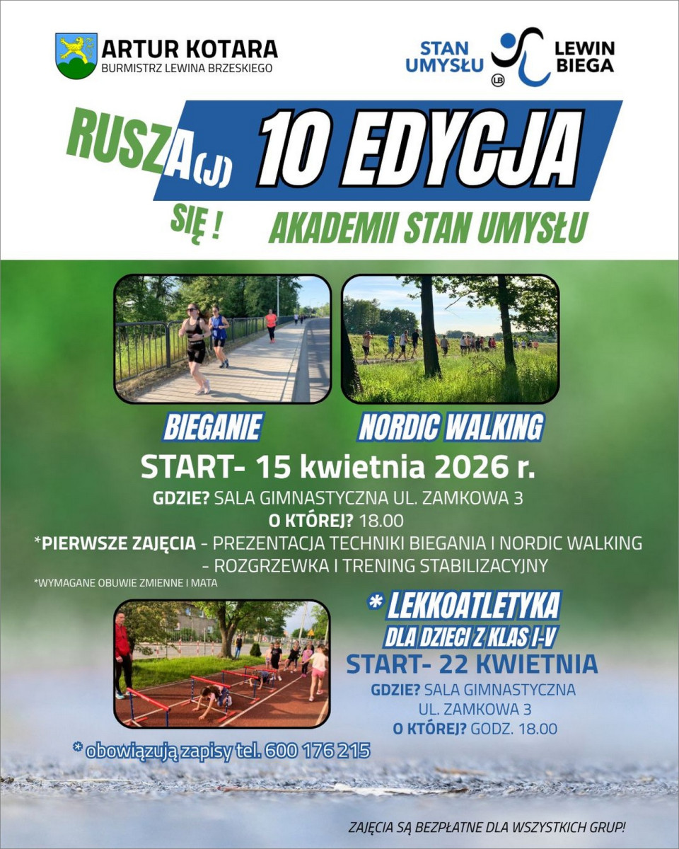 W tym roku organizatorzy przygotowali trzy sekcje. Uczestnicy mogą wybrać nordic walking, bieganie lub lekkoatletykę dla dzieci, która rozpocznie się 22 kwietnia. Program zajęć jest jednak znacznie szerszy.