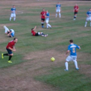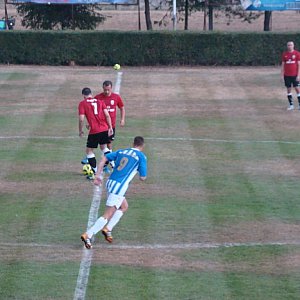 Z wolnego dośrodkowuje Dembiński, najwyżej do głowy wyskoczył we własnym polu karnym Stawecki i arbiter zakończył I. połowę.