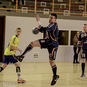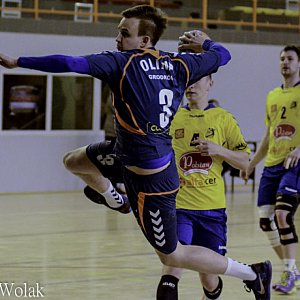 Drugą połowę rozpoczęli Olimpijczycy, ale pierwsze trafienia należały do zespołu z Końskich. W 34 minucie po faulu na Bartoszu Żubrowskim sędziowie podyktowali rzut karny. Celnie rzucił Piech. Na tablicy wynik 15:12. Następne trafienie Olimpijczycy zaliczyli cztery minuty później, w tym czasie goście rzucają dwie bramki. W 45 minucie po bramkach Piecha i Barana Olimp miał przewagę dwóch bramek, jednakże wiele zmarnowanych akcji w następnych minutach zostały wykorzystane przez rywali. W 49 minucie doprowadzają do remisu 19:19, natomiast minutę później po trafieniu Patryka Mastelarza wygrywają jedną bramką. W 54 minucie sędziowie po faulu na Baranie podyktowali rzut karny, na parkiecie między rywalami ponownie remis i wynik 20:20, lecz minutę później ponownie prowadzi Końskie po rzucie karnym. Dwie minuty później ponownie trafiają rywale, na parkiecie można zaobserwować nerwową atmosferę. W 55 minucie ponownie rzut karny i celne trafienie Piecha. W 56 minucie do remisu doprowadza Łukasz Gradowski. W końcówce spotkania Olimpijczycy i goście nie potrafią trafić do bramki. W 57 minucie bliski był Baran ale obronił Wnuk. Minutę przed końcem spotkania Piech zdobył bramkę na wagę dwóch punktów. Goście w ostatniej akcji, jaką byli w stanie przeprowadzić nie wykorzystują. Wygrana Olimpu Stała się faktem.