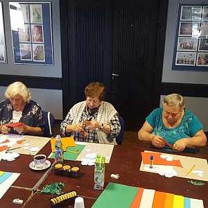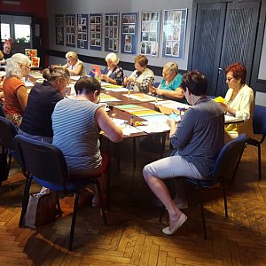 W sierpniowej odsłonie seniorzy wykonywali między innymi papierowe kwiaty z kolorowych kartek papieru. Zajęcia były świetną okazją do tego by poznać w jaki sposób można wykorzystać zwykłe kartki papieru do ozdoby pamiątkowego prezentu, czy stworzenie urodzinowej kartki.