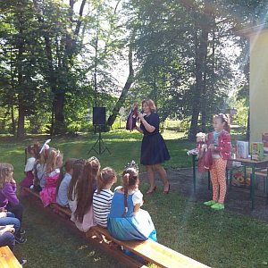 Z cyklu BIBLIOTEKA W PLENERZE w grodkowskiej bibliotece gościliśmy autorki: Melanię Kapelusz i Wiolettę Piasecką. W spotkaniach uczestniczyło bardzo dużo dzieci wraz z rodzicami, dziadkami i opiekunami. Oprócz prezentacji swoich utworów zaproszone autorki opowiadały o swojej pracy pisarskiej. Uczestnicy brali też udział w konkursach, zabawach i pląsach. W filii w Jędrzejowie dzieci uczestniczyły w korowodzie postaci bajkowych i zaprezentowały krótkie scenki do baśni Wioletty Piaseckiej. Także w filiach w Gnojnej i w Kolnicy po każdym spotkaniu dzieci miały możliwość porozmawiania z autorkami, zakupienia książek z dedykacjami oraz zdobycia autografów. Spotkanie z pisarkami bardzo zainteresowało dzieci i zachęciło do lektury ich książek. Na rynku przed biblioteką odbyły się także w ramach tego samego cyklu BIBLIOTEKA W PLENERZE spotkanie, podczas którego Seniorzy prezentowali wiersze Brzechwy i Tuwima.