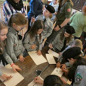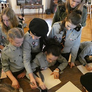 W ramach prowadzonych przez kustosz Małgorzatę Młynarską zajęć, harcerze mogli zobaczyć najstarsze źródła pisane. Jednocześnie zorganizowany został konkurs, w ramach którego na papierze czerpanym przy użyciu gęsiego pióra zuchy i harcerze tworzyli inicjały sowich drużyn.