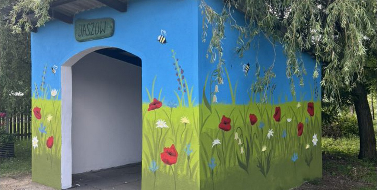 W Jaszowie powstał prawdopodobnie najpiękniejszy przystanek w powiecie brzeskim. Dawny, szary obiekt, przy którym codziennie zatrzymuje się szkolny autobus, dziś wita pasażerów feerią barw - ściany zdobią kwitnące maki, delikatne niezapominajki i radosne pszczółki.