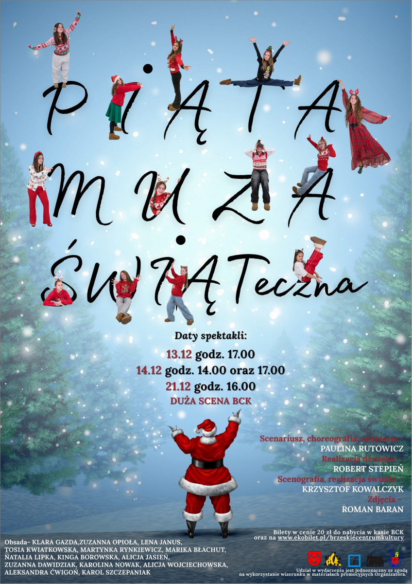 Komediowy sznyt z nutą refleksji, roztańczone nogi, ręce i serca pełne pasji, to wszystko ma pojawić się na grudniowych spektaklach „Piątej Muzy Świątecznej”. Tak na swojej stronie Brzeskie Centrum Kultury zachęca do obejrzenia widowiska, podkreślając, że będzie to mieszanka śmiechu, energii i scenicznej lekkości.