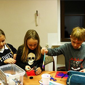 Następnie uczestnicy zabawy udali się do Evie (Iga Przeklasa). Uczyliśmy się poważnych i strasznych min. W kolejnej Sali czekała Enid (Anastasiia Łukaszów). Twierdziła, że Wielka Rąsia jest za mało kolorowa i trzeba ją bardziej upiększyć. To zadanie nie należało do łatwych. Uczestnicy musieli działać pod presją czasu.