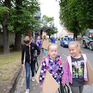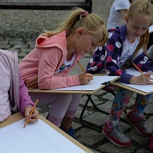 Tematem wiodącym w środę były "wakacje", czego odzwierciedleniem była zakolorowana uliczka wzdłuż Domu Kultury - dzieci kredami narysowały ogromny napis "Wakacje 2015", który ozdobiły motywami związanymi z latem. Następnie każdy uczestnik warsztatu wykonał pastelami na brystolu pracę z wyobraźni, która miała przedstawiać wakacyjną swobodę lub wakacyjne zagrożenia. Powstały bardzo interesujące i oryginalne prace. Czwartego dnia na dzieci czekał wykład wprowadzający w historię sztuki dotyczący kościoła parafialnego pw. św. Michała Archanioła w Grodkowie. Po omówieniu teorii (dostosowanej do wieku uczestników) grupa przeszła pod kościół, który dokładnie zwiedziła. Oprócz zwiedzania czwartkowym zadaniem było naszkicowanie ołówkiem bądź węglem portalu od strony północnej.