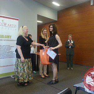 Dnia 31 maja 2016 roku Wiktoria wraz z panią Iwoną Stroną- Muszczyńską pojechały do Instytutu Jana Pawła II w Warszawie by na uroczystej gali odebrać nagrodę. Na konkurs nadesłano ponad 700 prac z 200 szkół. Jury wybrało pracę Wiktorii jako najlepszą pod względem emocji przekazu i zrozumienia tekstu kardynała Stefana Wyszyńskiego: Smutek jest przepaścią, w której może wszystko utonąć, a pociecha jest podaną dłonią, wyciąga z przepaści. Celem konkursu było upowszechnienie wiedzy o osobie, życiu i działalności Stefana Kardynała Wyszyńskiego, kształtowanie postaw współczesnej młodzieży i promowanie wartości, którym był wierny Prymas Tysiąclecia, poprzez prezentację własnych uczuć zamkniętych w formie plakatu. Z tym, jakże trudnym zadaniem, uczennica drugiej klasy szkoły zawodowej o specjalności cukiernik poradziła sobie najlepiej w Polsce. To nie pierwszy sukces Wiktorii. Jej plakat ekologiczny również zajął I miejsce w Szkolnym Konkursie Ekologicznym. To bardzo zdolna i wrażliwa osoba. Jako Szkoła Odkrywców Talentów będziemy wspierać Wiktorię w jej rozwoju artystycznym.