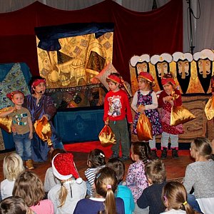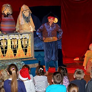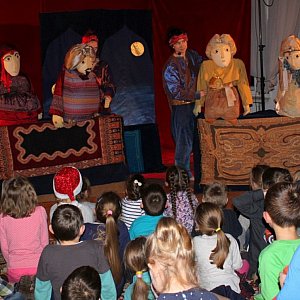 I to nie z byle jakiej, ale z takiej o "Ali Babie i czterech rozbójnikach"! Tak, czterech, nie czterdziestu, bo jest niż demograficzny. A tak naprawdę to rozbójników było siedemdziesiąt - małoletnich i bardzo rozkrzyczanych, dzielnie ogarniały ich dwie panie z Wędrownego Teatru Lalek "Małe Mi". Przeniosły całą zgraję zgromadzoną w Klubie 1 Pułku Saperów do niezwykłej krainy Baśni Tysiąca i Jednej Nocy. Tam czekał na nich dom Ali Baby, las, grota Rozbójników i Czarodziejski Sezam. Scenografia zmieniała się dynamicznie i niespodziewanie, przed oczami dzieci wirowały piękne lalki, niosąc baśniową historię na skrzydłach wartkiej akcji i tańcząc do muzyki Artura Dwulita.
