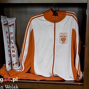 i różnego rodzaju pamiątki z olimpiad, które uzupełniają zdjęcia i flagi.