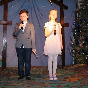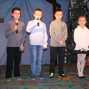 Powiedział również, że młodzi ludzie powinni czerpać wiedzę z ich doświadczenia. Burmistrz przekazał także na ręce dyrektora Miłosza Kroka nagrodę dla szkoły. Potem przyszedł czas na wysłuchanie wierszy i piosenek dedykowanym babciom i dziadkom, które przygotowały dzieci z I i III klasy pod kierunkiem wychowawczyń: Elżbiety Mazur i Doroty Róży. W ten sposób najmłodsi podziękowali babciom i dziadkom za ich codzienny trud włożony w wychowanie wnucząt. Następnie na scenie wystąpił szkolny zespół wokalno-muzyczny prowadzony przez byłego dyrektora szkoły Piotra Mieszczańczuka, który profesjonalnie wykonał jakże wzruszające kolędy.