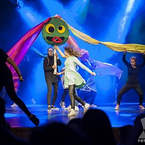 Na scenie można było zobaczyć wielkiego potwora, który wzbudzał w widzach uczucie strachu, Czerwonego Kapturka objaśniającego emocje towarzyszące wyprawie do lasu. Widzowie obserwowali lekcję w szkole, podczas której dzieci ukazywały cały wachlarz różnych emocji. Byli też zakochani i były koty słynące ze swoich kocich dąsów.