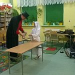 Na zakończenie na wszystkich czekała niespodzianka. Odwiedził nas ksiądz Tomasz Backer- na co dzień wikary z Lewina Brzeskiego, a z zamiłowania- iluzjonista. Zaprezentował nam kilka ciekawych sztuczek, a w niektórych sami uczestniczyliśmy.