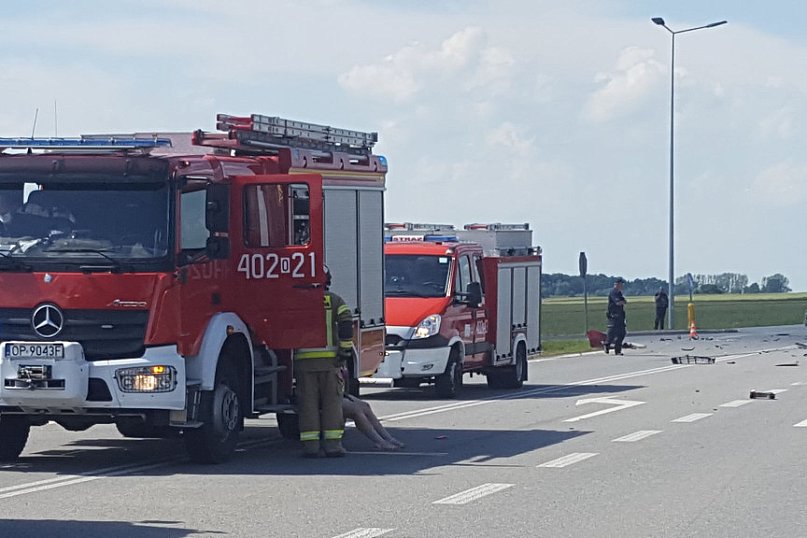 Do groźnego zderzenia dwóch aut osobowych, doszło dziś (28.06) na skrzyżowaniu dróg wojewódzkich 401 (obwodnica Grodkowa) z DW 385 w kierunku Ziębic. Cztery osoby odniosły obrażenia, w tym dwoje dzieci. Na miejscu pracują trzy zastępy strażaków, policja oraz zespół ratownictwa medycznego.