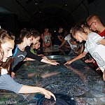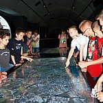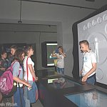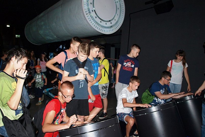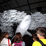 Przekraczamy wejście i znajdujemy się w innym wymiarze , przenosimy się w morskie głębiny. Cała ekspozycja pogrążona jest w mroku. Nad naszymi głowami przepływają ławice tuńczyków i rekinów, a zaraz obok zanurzony jest batyskaf. Przewodnik oprowadza nas po wystawie podzielonej na 8 części