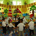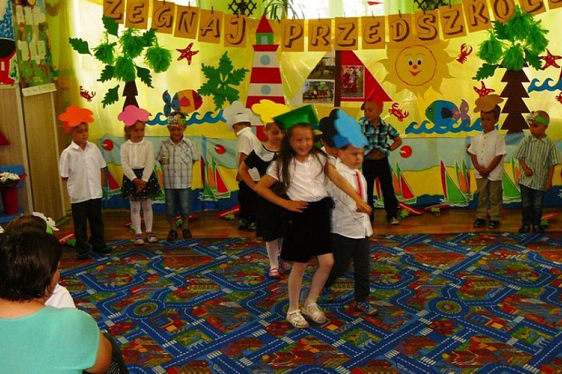 Dzieci przygotowały program słowno-muzyczny pod hasłem :"Przedszkolny rok" Po części artystycznej
