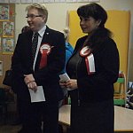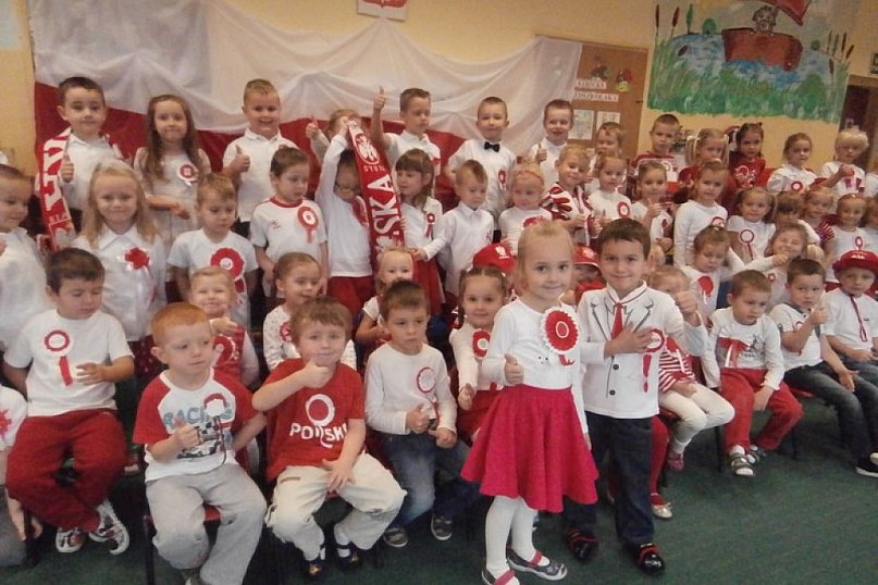 Tomasz Witkowski - zastępca Burmistrza Brzegu wraz z przedszkolakami z brzeskiej "Dziesiątki" zainaugurował tegoroczne obchody narodowego święta wspólnym wykonaniem piosenki " W domu Ojczystym".